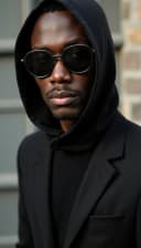 "ai fashion week black male model in avant garde streetstyle fashion"